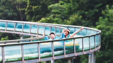 ▲玻璃橋採用最先進的5D聲光特效 ▲ 全國首創 360 度 3D 極限轉盤的峽谷河中 懸空漂流