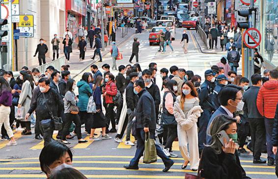 ▼ 本港逐步放寬防疫措施 後,社會的氣氛都活起來、 動起來。圖為黃埔街上人流 比之前增多 ▼