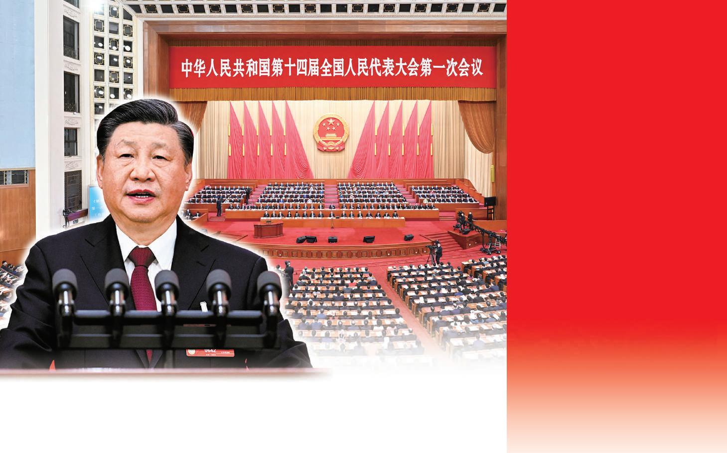 ◀ 3 月 13 日 , 第十四屆全國人民代表大 會第一次會議在北京人民大會堂閉幕。 中共中央總書記、國家主席、中央軍委 主席習近平發表重要講話