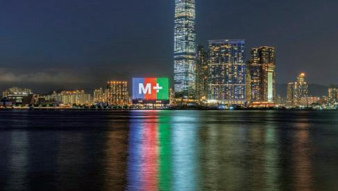 ▲ 夜幕下的 M+ 博物館 , 旅客還可以同時欣賞到維多 利亞港的迷人景色,儼然成為旅客訪港的必要打卡點