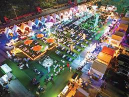 小手作的攤位 。 場地中央以帳幕布置 , 擺 放了餐枱和坐椅 , 充滿浪漫風情 , 是很多 網紅的打卡熱點。