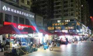 寶安區西鹽田街夜市位於高樓林立之中 , 全長四百 米 , 攤位超過一百個 , 是深圳最大的 夜市 。 攤檔擺滿各種特色小食 , 而且 以便宜見稱 , 十元八塊便可以吃個 飽 , 當中不得不提 , 就是一元人民幣 一串的缽缽雞,可謂平絕全深圳。