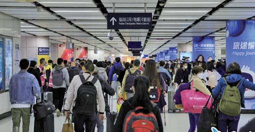 本港與內地因應疫情封關接近三年 , 終於在上周日 (1 月 8 日 ) 恢復首階段免檢疫通關 。 大批港人和內地人於通關首日 「 搶 閘」北上和南下,冷清三年的關口重現人潮。 分享本版內容 熱點新聞 2 www.KowLoonPost.hk 2023 年 1 月 11 日 星期三 有序通關 疫情下冷清3年 關口重現人潮 當天早上6時30分前,已有約300名市民在落馬洲支線口岸閘外等候過關。到了早上6時 30分,入境處準時打開關口鐵閘,職員檢查各人的預約證明及核酸檢測陰性證明,之後放行 讓他們進入過關通道,各人用大約10分鐘就完成香港一方的過關程序,現場秩序大致良好。 許多市民都表示,自疫情後已有三年沒有返內地,所以在通關第一天即時回內地探親。 在深圳一邊 , 各大入境口岸也紛紛佈置歡迎港人 。 其中 , 深圳福田口岸廣場的樹上掛 滿了串串紅燈籠 , 一塊巨大的紅色展板四角上掛滿了喜慶的氣球 , 展板正中間寫著 「 歡迎 香港同胞返深」;文錦渡口岸則掛上標語:「歡迎回家,祝您新年愉快!」 這一天 , 疫情下冷清三年的關口皆重現人潮 , 各口岸輪番上演令人淚目的場景 : 夫妻 戀人深情相擁 , 執手相看淚眼 ; 親朋好友重聚 , 歡欣之情溢於言表 ; 更有許多遊子歸心似 箭、步履匆匆,急切盼望出關後早日抵家見到父母。 根據首階段免檢疫通關安排,陸港兩地每日最多可以各自有6萬人經海陸空口岸北上內 地以及南下香港。本港入境處的數字顯示,截至首日通關的晚上8時,本港各個管制站當天 共有56,852出境人次及35,367入境人次。 1月15日前研究第二階段通關 隨著兩地首日順利通關 , 不少市民皆期盼增加出入境配額 。 特首李家超回應時表示 , 希望越早越好,但仍要視乎實際情況, 確保過程穩妥可控。他說:「我們的部 署是希望完全回復正常。不需要任何人 數安排的全面通關,肯定會出現,我希 望越早越好。」 據新華社報道,據了解,深港兩地 會在實施通關後一周內 , 不遲於 1 月 15 日,就第一階段的整體實施情況進行分 析。在雙方形成一致意見基礎上,再研 究安排實施第二階段恢復通關安排。 高鐵先通深穗 最遲周日復運 本港與內地開始首階段免檢疫復常通 關,目前有七個口岸重開,市民亦十分期 待高鐵可早日復運。運輸及物流局局長林 世雄 1 月 9 日視察高鐵西九龍站 , 除了聽 取港鐵匯報高鐵試運等準備工作進展外, 亦走入高鐵車廂試用座位的新功能。他指 出,高鐵日前已開始試運,目標為不遲於 周日復運,將先開通往返香港至深圳及廣 州的班次,跨省及長途班次則遲些恢復。 有工會引述消息表示,香港高鐵將駛 往廣州東站取代城際直通車,估計直通車 不再復運。 1 前往內地有效證件 2 出境預約證明 3 付費進行的48小時內核酸檢測陰性結果 提提你 入境內地要帶齊「 三寶」 親朋團聚 ▲兩地通關後,高鐵也即將復運 ▲ 李家超率領主要官員到落馬洲支線口岸 , 視察 首日免檢疫通關 ▼ 在落馬洲支線口岸 , 親人相聚相 擁而泣 ▲在落馬洲支線口岸,約300名市民在過 境大堂未開閘前已在閘外等候 , 當中不 少人拖著行李箱,現場秩序大致良好 ▲ ��月 �� 。