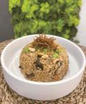 8 待煮熟後,最後加入毛豆仁和松子仁一起拌勻,即完成上碟,可加少許七味粉和紫菜絲 同吃。