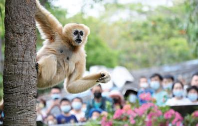 ◀深圳野生動物園 的金絲猴屬中國一 級保護動物