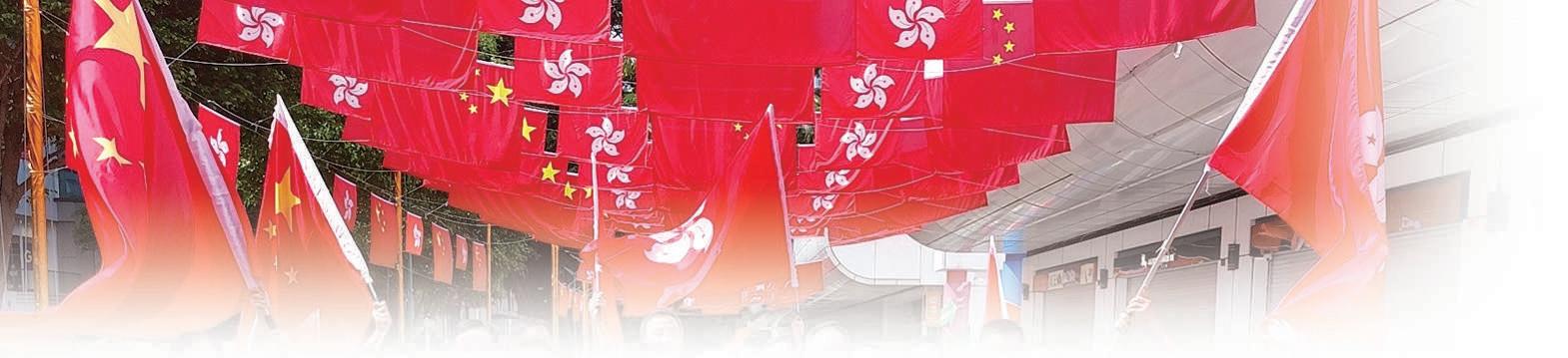 ▲ 九龍城多處掛滿國旗和區 旗,回歸氣氛濃厚