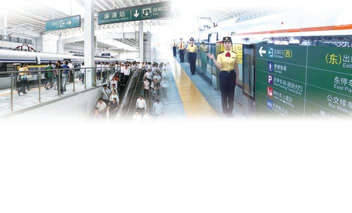 為了便利出行,鐵路、地鐵系統均採用「安檢互 認」方式,乘客在佛山西站及東莞西站可通過便捷換 乘通道換乘鐵路,無需二次安檢。而在肇慶站、番禺 站、鼎湖東站、常平東站和小金口站亦只需要出站換