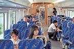 ◀ 乘客體驗首趟 運行的佛莞城際 鐵路列車