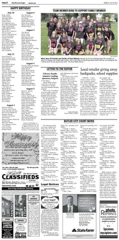 Robert S. Kobiela Brett Cramer Kelly Obendorf Lindsey Joann Smith Christine Marie Kobiela Linda Bartels Davis Robert Steven Kobiela Linda Christine DePew Paula Joyce Jinnings Danny Joseph Kinsey Mark Walker Berry Allen Parker Cola Crager William Charles Ort Henry Snyder Mrs. Robert Lung James Allen Woodward Mary Elizabeth Brown Elaine Fleckenstein Send your birthdays to scarpenter@kpcmedia.com or phone 925-2611 ext. 45 Please spell out name when leaving a voicemail message
