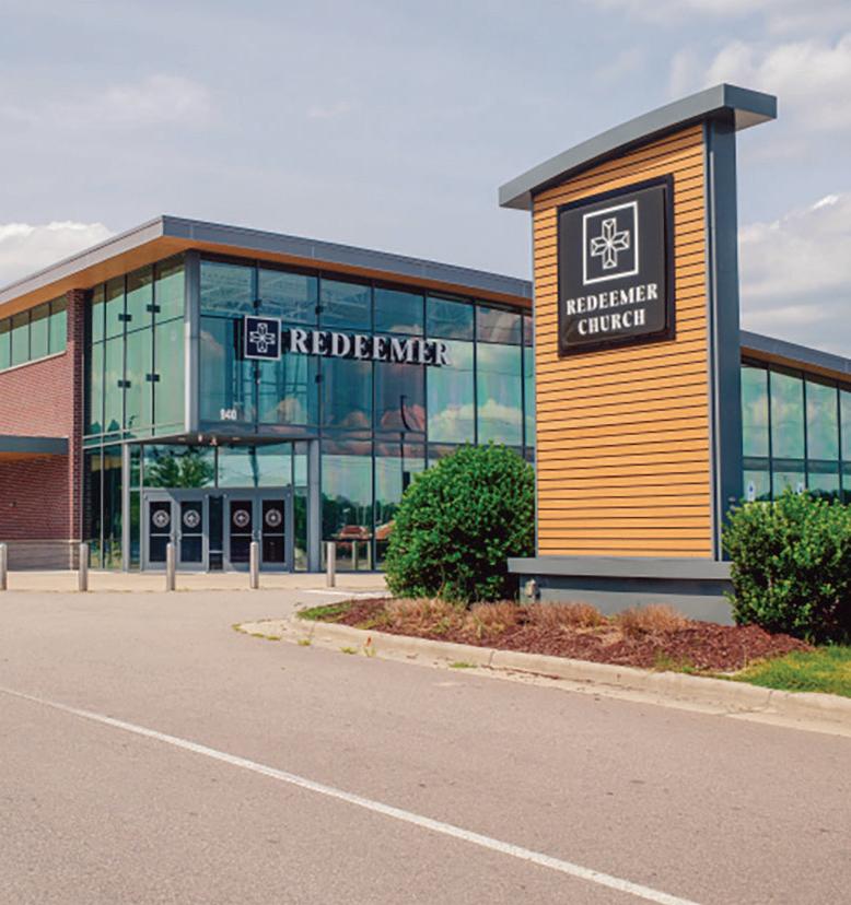 How far Redeemer Church has come in just 12 years. Founded in summer of 2013 as a weekly, in-home Bible-study group, the church quickly outgrew the living rooms where they met. By September of that year, the church began holding weekly worship services at Faith Christian School. Within five years, their numbers surpassed 300, prompting them to construct a facility in 2019 with the help of BCLC.