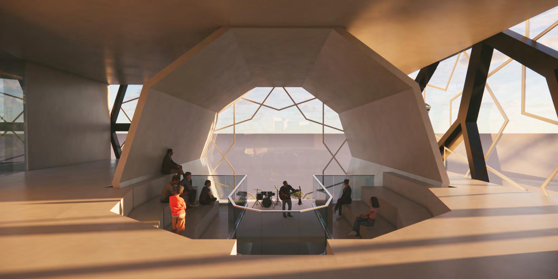 In this unconventional space, the emphasis is on fostering a sense of unity through the universal language of music. The design encourages impromptu performances, providing a platform for local talents to shine. Moreover, when celebrities grace the venue, the rooftop transforms into a stage, amplifying the communal experience as they perform and connect with the diverse audience below.