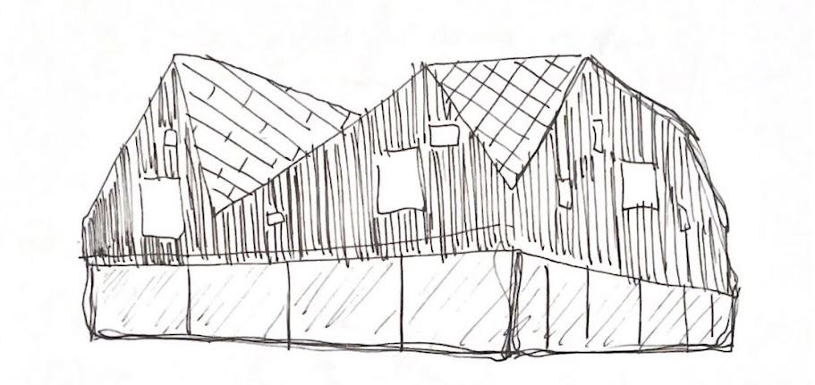 The Dune House, in the United Kingdom, was designed by architects JVA. The concept sketch is depicted on the left and the final product is shown on the right.