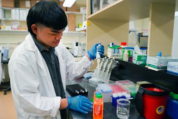 University of Guam chemistry major Loreto Paulino Jr. works at the UOG Marine Laboratory. He has been assisting graduate students with their research as a way to gain valuable experience for when he applies to doctoral programs in oceanography. Photo courtesy of University of Guam