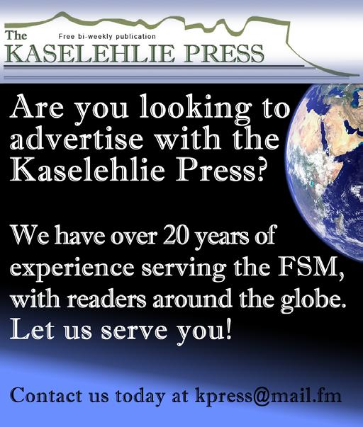 The Kaselehlie Press April 12-25, 2023 2 The Your Newspaper for Today and Tomorrow P.O. Box 2222 Pohnpei, FM 96941 ph:(691) 320-6547 email: Kpress@mail.fm Bill Jaynes Managing Editor Kaselehlie Press THE NEXT ISSUE OF THE KASELEHLIE PRESS WILL BE RELEASED ON: April 26, 2023 Deadline for submission of articles or advertisements for this issue is the end of working hours on: Monday, April 24, 2023