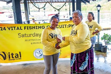 Lensileen Nicholas received a $125 check as the top lady angler for her 21.4-pound yellowfin.