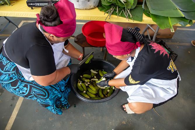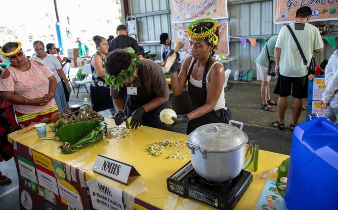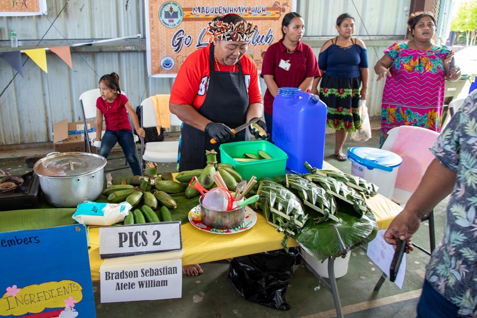 After the formal ceremony, the cooking showdown began. Contestants from each of the represented high schools had two hours to prepare recipes featuring banana, taro, yam, sweet potato, or breadfruit. The dishes they prepared were judged on taste, creativity and innovation, presentation, speed and simplicity of preparation, teamwork, nutritional value, and costeffectiveness.