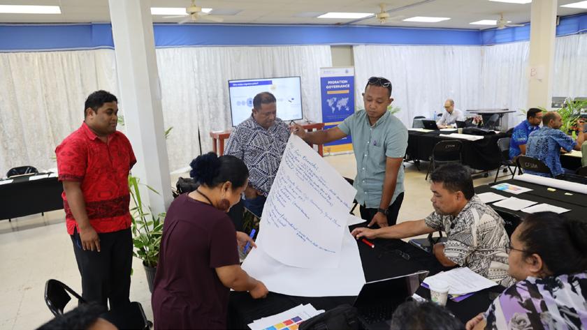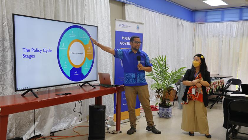 The training sessions included the components of the policy cycle, migration-related legislation, migration and climate change, and an experience-sharing session with IOM Solomon Islands on return and reintegration.