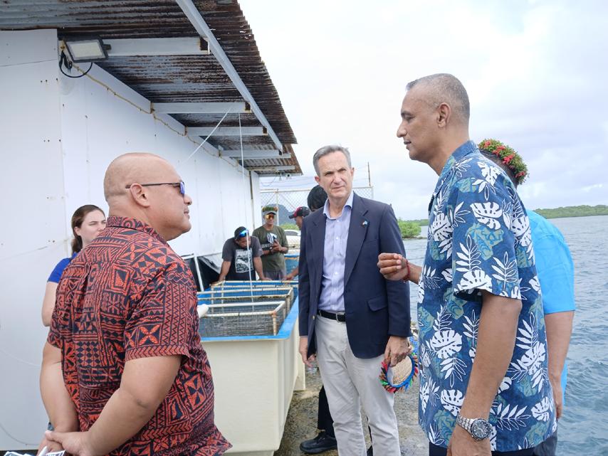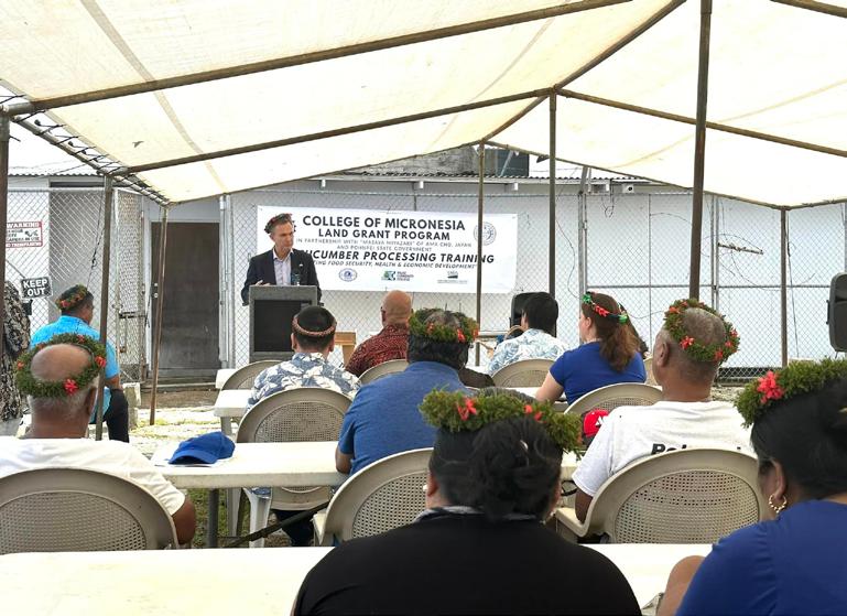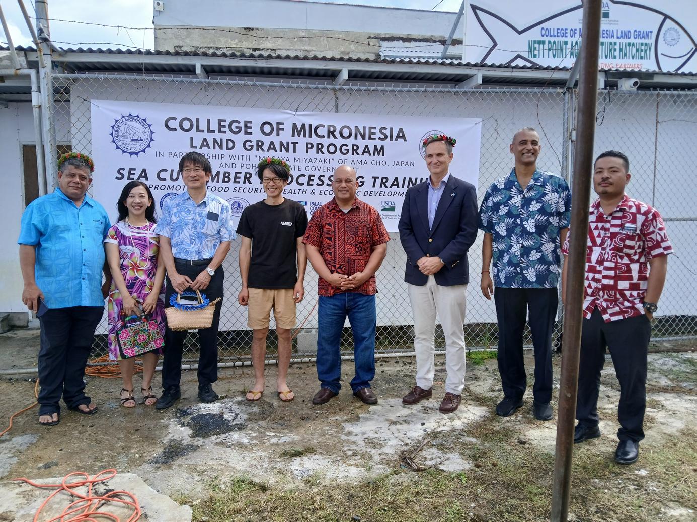 U.S. Chargé d'Affaires Vincent MutTracy joined Governor Stevenson Joseph, Ambassador Kagomiya Nobuo, Land Grant Executive Director Stanley Lorennij, and Director and Aquaculture Chief Scientist Dr. Manoj Nair at the COM-FSM Land Grant Program's Sea Cucumber Processing Demonstration ceremony held at Nett Point on November 26. This ceremony kickstarted a two-day sea cucumber processing training sponsored by the U.S. Department of Agriculture's National Institute of Food and Agriculture (USDA NIFA).