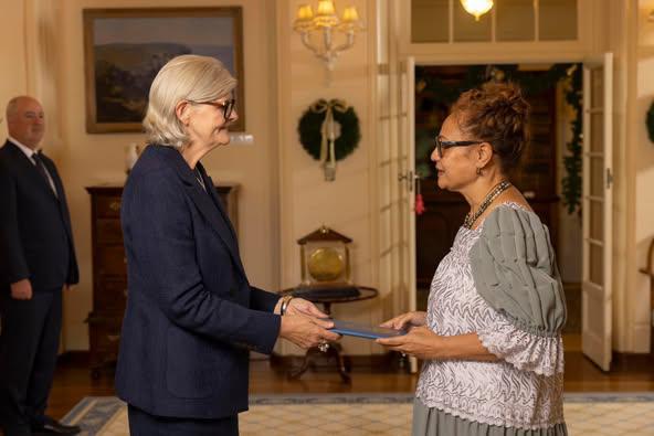 On December 6, 2024, in Chuuk, the President administered the oath of office to Ms. Myjolene Kim as the Deputy Chief of Mission to the FSM Embassy in Australia, Ms. Cindy Siren Mori as a board member of FSM PetroCorp, and Mr. Skenson Erwin as a member of the FSM Banking Board. He also swore in Ms. Frita Irons as the National Election Commissioner for Chuuk State, Mr. John Akapito as a member of the FSM Scholarship Board, and Ms. Yolanda Mori as a fellow member of the FSM Scholarship Board. Speaking at the ceremony, President Simina reiterated his administration’s dedication to inclusivity, accountability, and ensuring that capable individuals serve in positions critical to the Nation’s advancement.