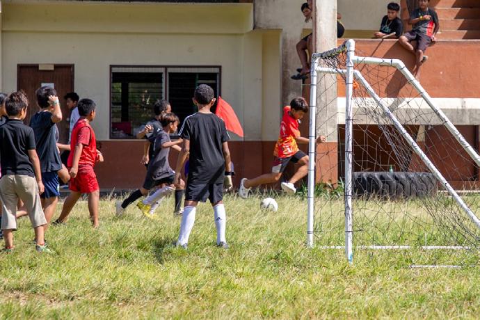 It was a blazingly sunny afternoon in the courtyard of Awak Elementary School on the edge of the beautiful lagoon. Energy was unflaggingly high among the players in the blazing sun, as well as among the parents who sat in the shade of the school and cheered their young ones on.