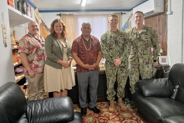Kolonia, Pohnpei—Governor Stevenson A. Joseph today welcomed the incoming U.S. Navy Seabees team, led by Lieutenant Junior Grade (Lt(jg)) Brandon Reed, accompanied by U.S. Defense Attaché Navy Commander Jason Neal and Her Excellency Jennifer L. Johnson, U.S. Ambassador to the Federated States of Micronesia (FSM).