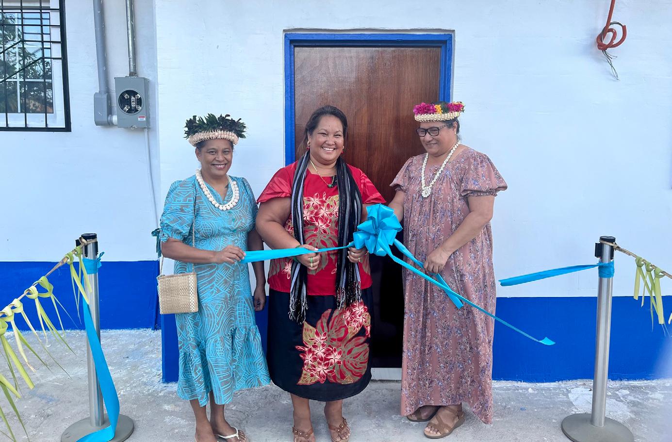 Pohnpei—Immediately following the handover ceremony of the newly renovated Pohnpei Administration Building, the First Lady of Pohnpei, Dr. Aina Garstang, the First Lady of the FSM, and Likend Madolenihmw led the ribbon-cutting for the brand-new