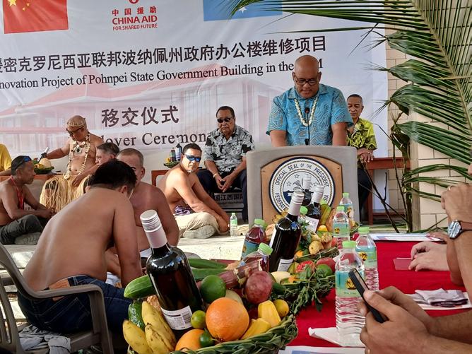 Pohnpei—After a year of extensive renovations funded by the Chinese Government, the Pohnpei State Administration Building was officially handed over in a momentous ceremony today. Governor Stevenson A. Joseph and First Lady Dr. Aina Garstang welcomed esteemed guests, including the President of