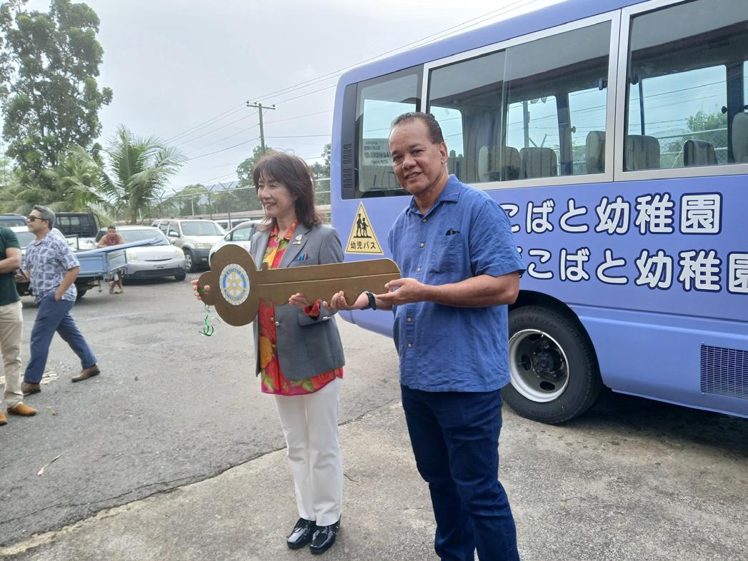 The donation was made possible through the generosity of Mr. Kokichi Sato, a member of the Rotary Club of Iwanuma, Rotary International (RI) District 2520, in Miyagi Prefecture, Japan. Mr. Sato, whose family operates the Kobato Kindergarten School in Japan, provided the school bus to support Pohnpei's educational infrastructure.