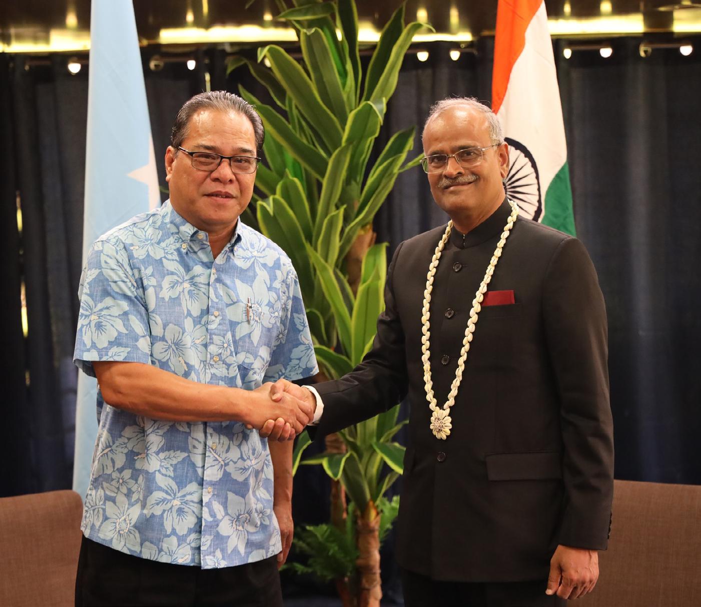 PALIKIR, Pohnpei—On January 8, 2025, the Federated States of Micronesia (FSM) welcomed His Excellency Shri Harsh Kumar Jain, Ambassador Extraordinary and Plenipotentiary of the Republic of India, during a formal presentation of credentials ceremony held at the Office of the President in Palikir, where His Excellency President Wesley W. Simina, accepted Ambassador Jain’s letter of credence. President Simina highlighted the longstanding and productive partnership between FSM and India, established in 1996 and grounded in mutual respect and shared interests.