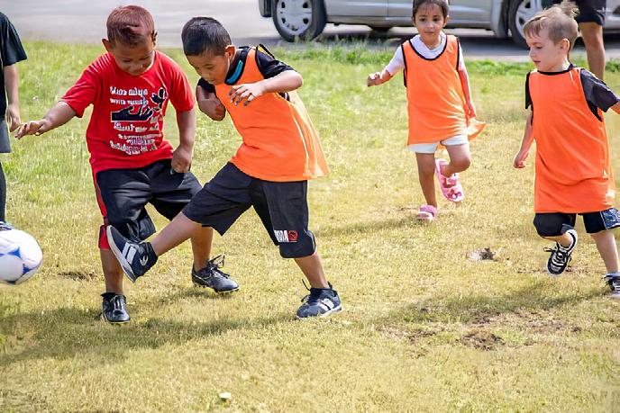 While the big match was happening on the larger pitch, other volunteers were working with the five-on-five teams of very young children as an introduction to the sport. It was obvious while watching those children that some had never kicked a soccer ball before, while others already displayed impressive ball-handling skills.