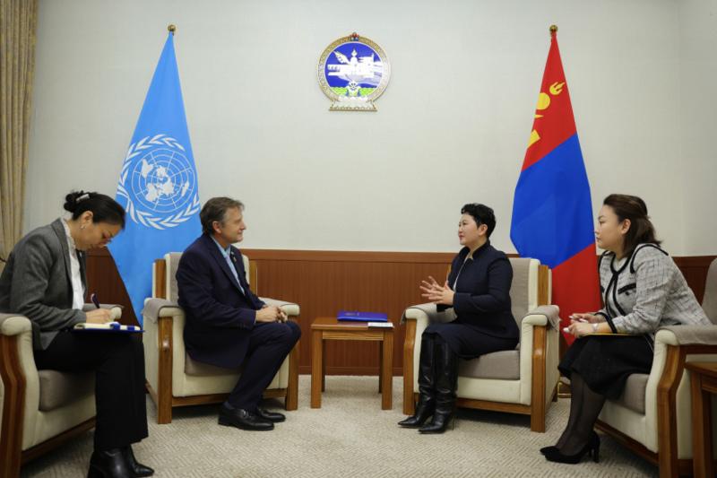 Jaap van Hierden expressed gratitude to Foreign Minister Battsetseg and affirmed close collaboration in implementing joint development agendas. The Resident Coordinator also praised the government of Mongolia for successfully hosting the Female Foreign Ministers Meeting and the World Women's Forum, highlighting Mongolia's efforts toward gender equality and promoting women's leadership.