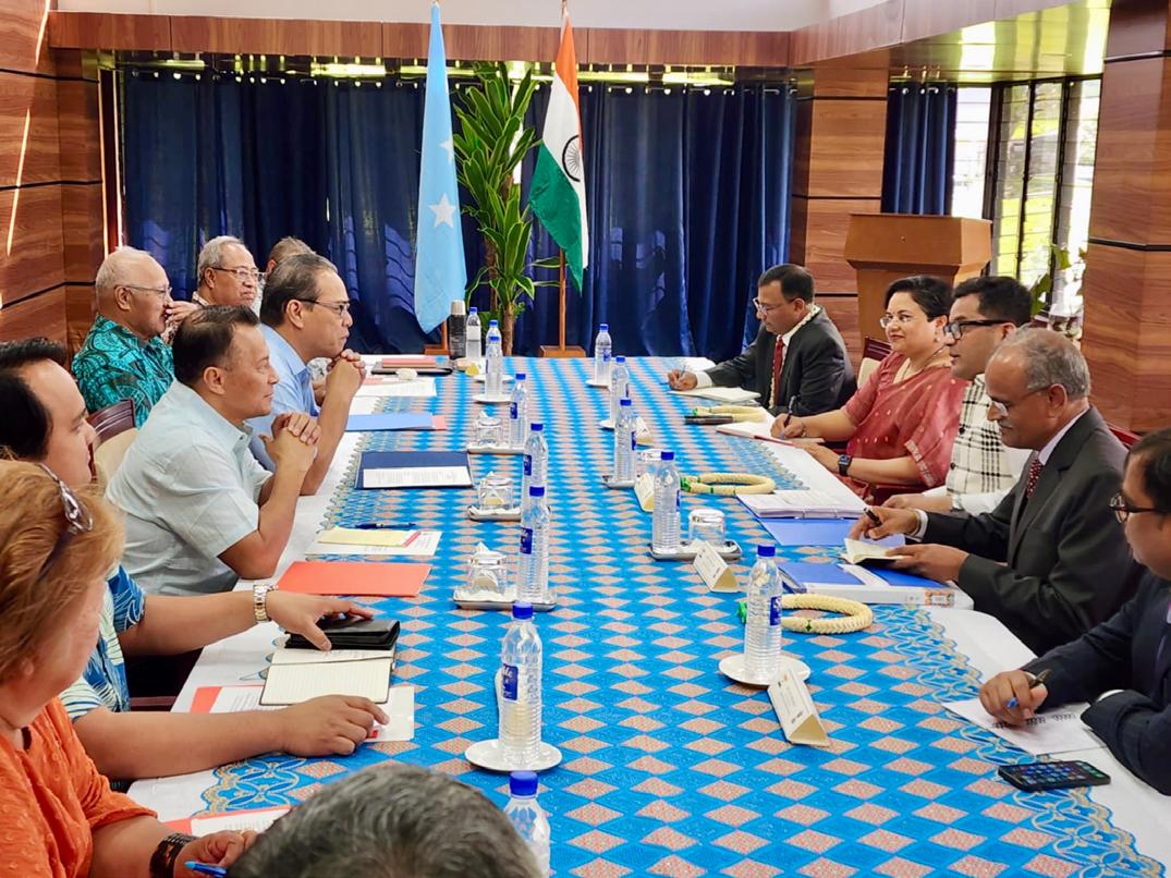 During the visit, Minister Margherita met with His Excellency President Wesley W. Simina, Vice President Aren B. Palik, and senior government officials. These discussions focused on strengthening bilateral cooperation in critical areas such as India’s support for the construction of the One UN House project, the FSM National Diagnostic Center, and a proposed Memorandum of Understanding between the FSM and