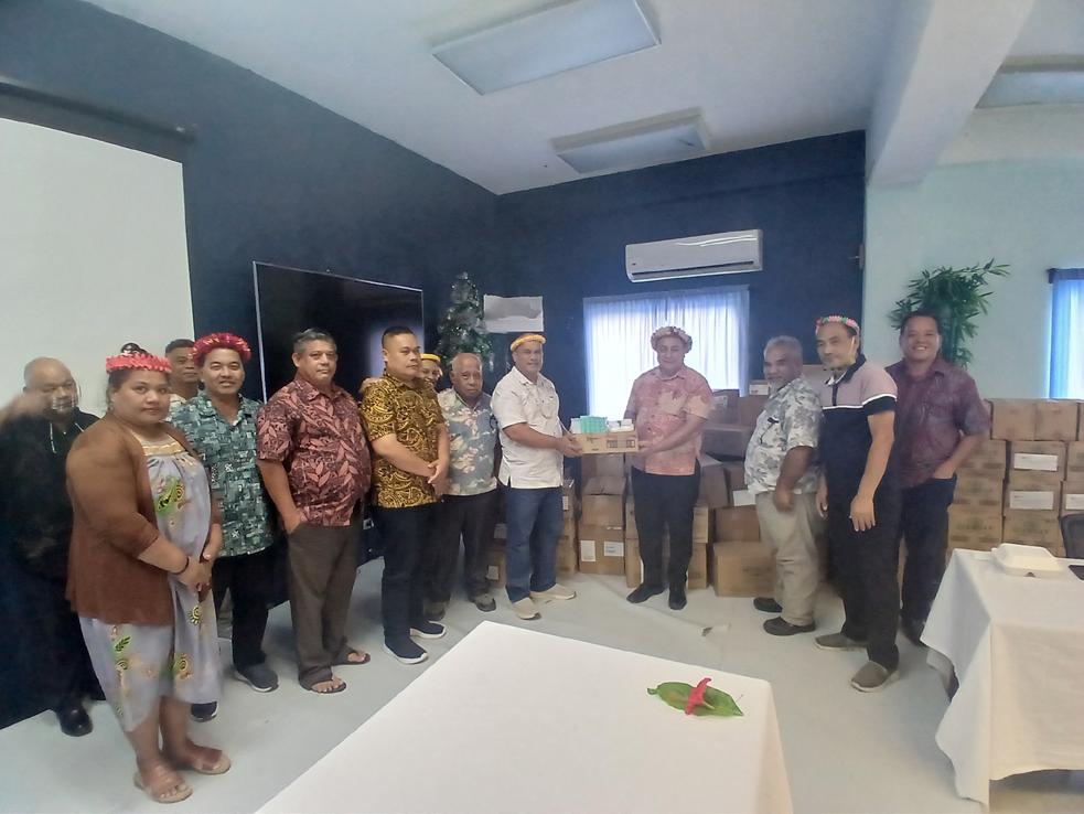 Acting Secretary of the FSM Department of Health and Social Affairs, Mr. Moses Pretrick, formally handed over the much-needed supplies to Governor Stevenson A. Joseph and Director Stuard Penias in a brief ceremony. The medication and supplies, procured locally from Genesis and MedPharm, will help strengthen