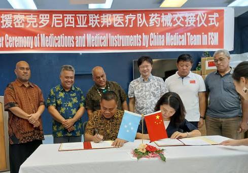 Pohnpei—The Pohnpei State Government has received a generous donation of medications and medical supplies valued at over 570,000 RMB (approximately USD 80,800) from the China Medical Team, facilitated by the FSM National Government and the Embassy of the People’s Republic of China. The official handover ceremony marked yet another milestone in the ongoing partnership between the Federated States of Micronesia and the People’s Republic of China in strengthening healthcare services in the state.