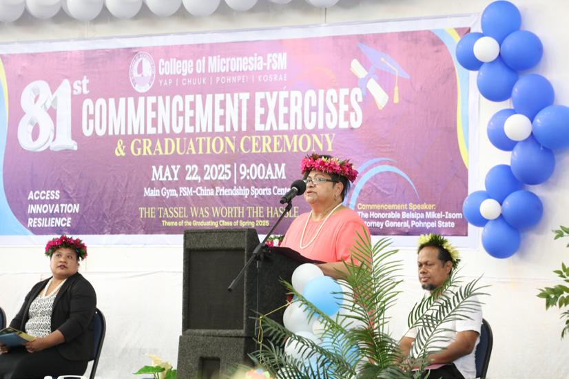 – The College of Micronesia-FSM (COM-FSM) proudly celebrated its 81st Commencement Exercises and Graduation Ceremony on May 22, 2025 at the FSM-China Sports Center. The Spring Graduating Class of 2025, operating under the inspiring theme “The Tassel is Worth the Hassle,” saw 167 graduates capped from 24 diverse programs. These programs ranged from certificate levels to Associate of Arts and Science degrees, and Bachelor’s programs, encompassing a wide array of fields such as electronic engineering technology, telecommunications, motor vehicle mechanics, hospitality and tourism, Micronesian studies, education, and agriculture & natural resource management.
