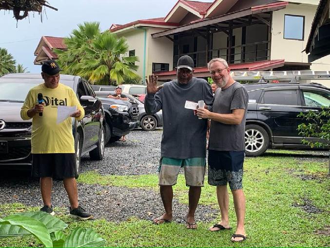 The tournament was sponsored by MRAG, Pohnpei Hardware, Imelda’s Shoes, Mangrove Bay, Blue Nile, Panuelo Gas Station, Arnold’s Pizza, and INS. The winners of the biggest fish category each received $100 worth of gift certificates from Pohnpei Hardware and Imelda’s Shoes, along with cash awards. Cash prizes and $25 gift certificates were also awarded for the largest and secondlargest catches in seven different species categories—$125 for first place and $50 for second.