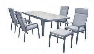 GARTENMÖBELSET SONDRINO 9 TLG bestehend aus 4 Aluminium-Verstellsesseln inkl. Komfort-Hochlehnerkissen und Sondrino Alu-Ausziehtisch mit Keramikplatte 160/210 x 100cm