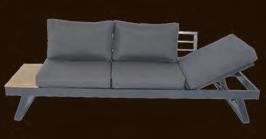MULTIPOSITIONSLOUNGEBANK kann von einer Bank in eine Sonnenliege umgewandelt werden mit verstellbarer Kopfstütze rechts und kleinem Seitentisch links, Maße ca. 225 x 77 cm inkl. aller Sitz- und Rückenkissen