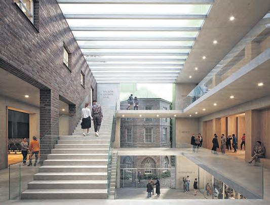 Das neue Saalfoyer erweitert die Foyerebene im Erdgeschoss und verbindet den großen Saal mit dem Musikerlebnisraum über zwei Ebenen. Bild: JSWD Architekten mit GINA Barcelona Architects