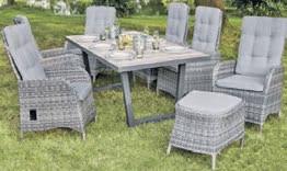 GARTENMÖBELSET BAILADO 9 TLG. bestehend aus 4 Verstell-Geflechtsesseln Bailado mit Gasdruckfedersystem inkl. Sitzund Rückenkissen und 1 Aluminiumtisch mit Keramikplatte Bailado 220 x 100 cm
