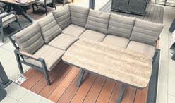 CORIDO ECKLOUNGE MIT LIFTTISCH Aluminiumgestell mit Polyrattan grau-mix, bestehend aus 2 Bankelementen, 1 Eckteil und 1 Mittelteil, inkl. 1 Talina höhenverstellbarem-Ausziehtisch mit Keramikplatte 140/180 x 90 cm