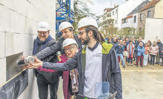 einem Erfolg machen sollen. Da sind wir abergläubisch“, so Bretschneider mit einem Augenzwinkern. Beiratssprecherin Grziwa-Pohlmann drückte ihre Freude über das Voranschreiten des Bauvorhabens aus: „Das Torhaus 1 passt ideal zu Walle. Es ist ein weiteres Puzzlestück innerhalb dieses bunt-gemischten Stadtteils. Das sich hier schon bald der Martinsclub für ein inklusives Leben einsetzt, ist ein großer Gewinn.“