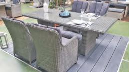 GARTENMÖBELSET DARWIN ANTHRAZIT bestehend aus 4 Geflechtsesseln Darwin sowie 4 Sitz- und Rückenkissen und 1 Geflecht-Gartentisch mit Glasplatte 220 x 100cm