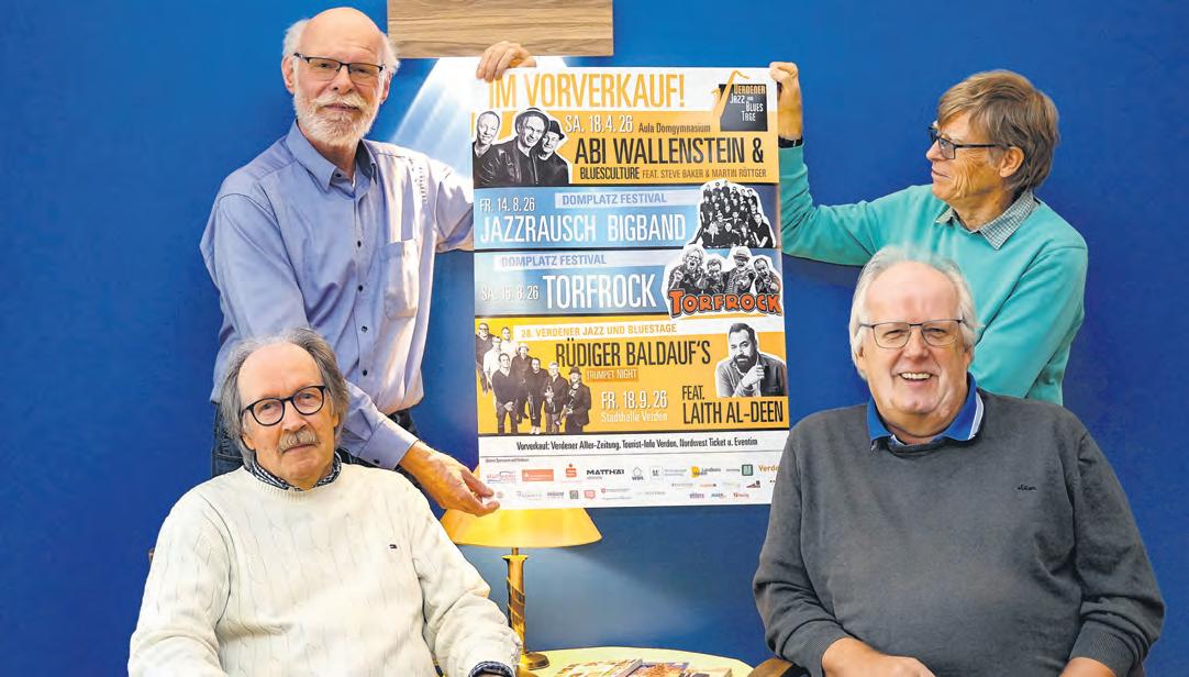 Programmmacher vom Verein Verdener Jazz- und BluesTage: Kassenwart Jürgen Köster (stehend l.), Musikchef