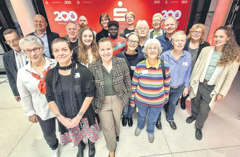 Gastgeberin Sonja Kastin (1. Reihe, 3. v. l., Bremer Sparkasse) mit den Preisträgerinnen und -trägern sowie Vertretenden der Jury des „Bremer Bürger:innenpreises“. Fotos: Marcus Schmidt