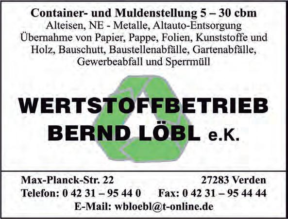 telefonisch bei Erika Ziemann unter 04231 / 849 09 (montags bis freitags von 13 bis 18 Uhr) sowie per E-Mail an erika_ziemann@