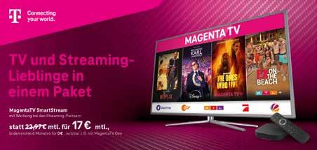 • X) Aktion gilt bis 30.09.2024 für MagentaTV Neukunden. MagentaTV SmartStream 2.0 kostet in den ersten 6 Monaten 0 €/Monat, danach 17 €/Monat (gegenüber 22,97 €/Monat bei Einzelbuchung), zzgl. 5 €/Monat für die TV-Box MagentaTV One. Mindestvertragslaufzeit 24 Monate. MagentaTV+ ersetzt die Megathek (für Nutzende ohne Smart-TV-Gerät ggf. MagentaTV One für 5 €/Monat, zzgl. Versandkosten). MagentaTV SmartStream 2.0 enthält Netflix Standard mit Werbung und Disney+ Standard mit Werbung (Full HD verfügbar). Voraussetzung für die Nutzung von Netflix und Disney+ sind die Registrierung und Akzeptanz der Nutzungsbedingungen und Datenschutzbestimmungen bei Netflix International B.V. und Disney+. Voraussetzung für die Nutzung ist eine bestehende Internetverbindung. Für die Internetverbindung gelten die Bedingungen des jeweiligen Internetanbieters. Bei Nutzung über das Mobilfunk-Datennetz erfolgt die Belastung des Datenvolumens beim jeweiligen Mobilfunk-Anbieter. Ein Angebot von: Telekom Deutschland GmbH, Landgrabenweg 151, 53227 Bonn.• J) Kostenloses Parken an allen Standorten für die Dauer des Einkaufs. • *UVP: Unverbindliche Preisempfehlung des Herstellers • Alle Preise sind Barzahlungspreise.• Nicht kombinierbar mit weiteren Werbe- oder Personalkauf-Aktionen • Alle Artikel ohne Deko. • Aufgrund hoher Nachfrage können Werbeartikel trotz sorgfältiger Planung bereits am ersten Angebotstag vergriffen sein. Keine Haftung für Druckfehler, Irrtümer, technische Änderungen der Geräte • 1) Finanzierung über den Kreditrahmen mit Mastercard®; Nettodarlehensbetrag bonitätsabhängig bis 5.000 €. Vertragslaufzeit auf unbestimmte Zeit. Gebundener Sollzinssatz von 0,00 % gilt nur für Verfügungen beim kreditvermittelnden Händler, im Falle der Erstverfügung zeitlich befristet auf 10 Monate, im Falle nachfolgender Verfügungen befristet auf 10 Monate ab Verfügung (soweit entsprechende Mitteilung durch die Consors Finanz). Danach und für alle weiteren Verfügungen beträgt der veränderliche Sollzinssatz (jährlich) 17,43 % (18,90 % effektiver Jahreszins). Die monatliche Rate beträgt min. 3 % der jeweils höchsten, auf volle 100 € gerundeten Inanspruchnahme des Kreditrahmens, min. 9 €. Angaben zugleich repräsentatives Beispiel gem. § 17 Abs. 4 PAngV (Kartenfunktion Ratenzahlung). Gültig für Kunden ab 18 Jahren mit Wohnsitz in Deutschland und gültiger EC-Karte; vollständige Einzelheiten zu den Voraussetzungen eines Kreditrahmens erhalten Sie bei Kreditvermittlung, welche ausschließlich für den