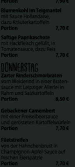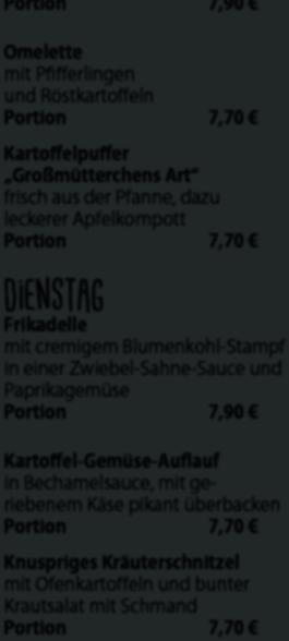 SAMSTAG Hausgemachter Kartoffeleintopf mit kleinen Würstchen Portion 5,40 € SONNTAG Dohrmanns Hühnerfrikassee in leckerer Sauce mit Spargel und Champignons dazu gebutterter Reis Portion 8,00 € Grillbratwurst im 10er Pack Paket 7,49 € VeggyLust VeggyLust VeggyLust
