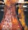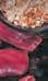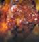 Schaschlikpfanne mit Zwiebeln und Bacon, Paprika und Tomaten in einer Ketchup Sauce, dazu geröstete Kartoffelwürfel