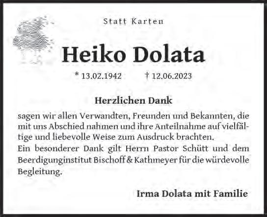 Die Trauerfeier mit anschließender Urnenbeisetzung findet am Dienstag, dem 22. August 2023, um 13 Uhr in der evang.-reformierten Kirche Bremen-Blumenthal, Landrat-Christians-Straße, statt.